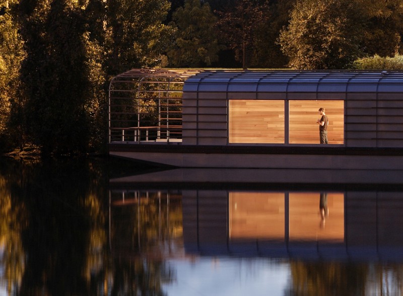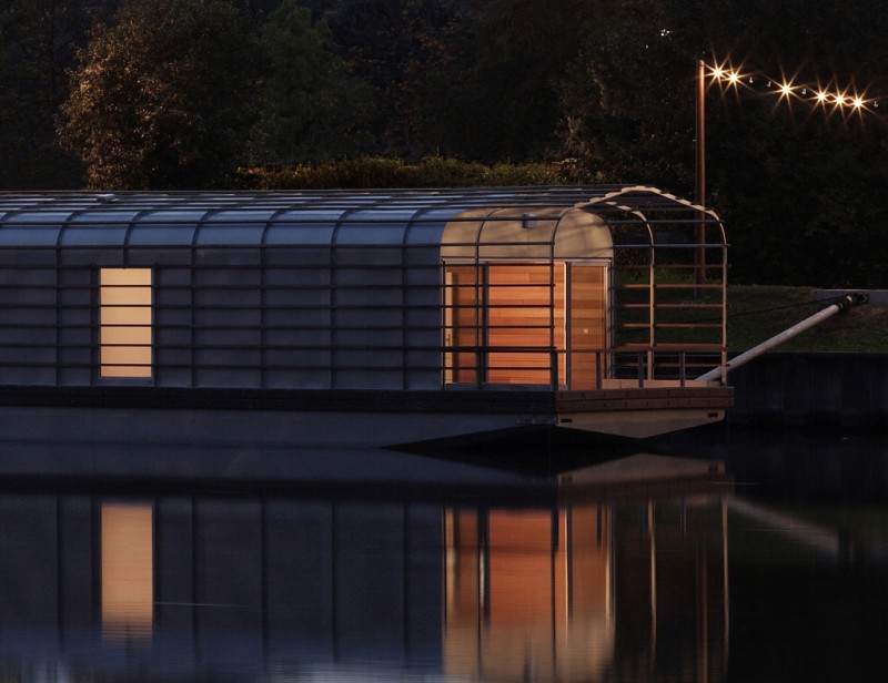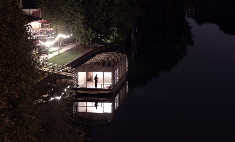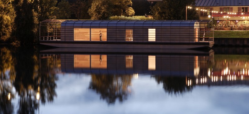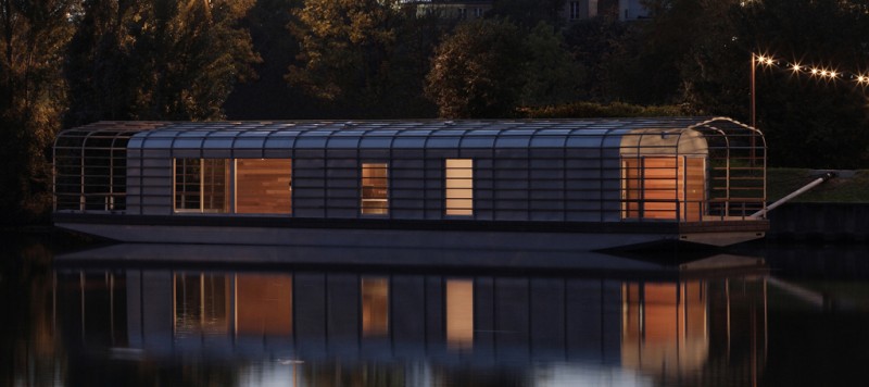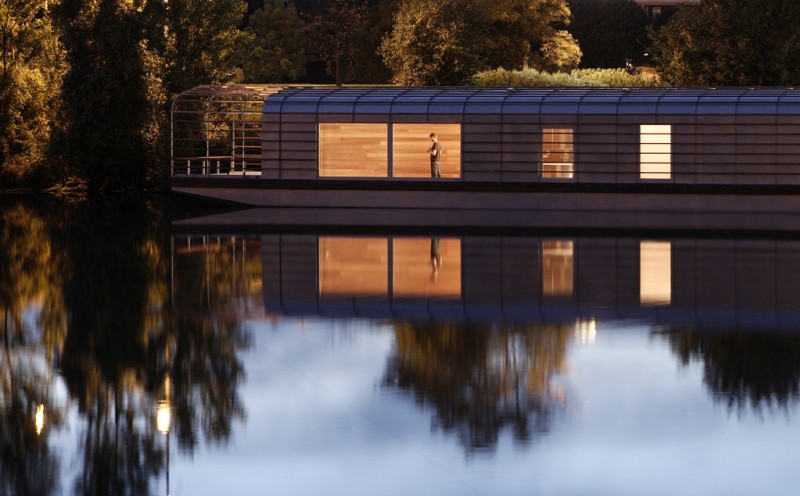 The Floating House was conceived as a reproducible object, as it can be designed again with various lengths and rooms surfaces (the width is fixed by that of the river locks – in case the House boat moves).