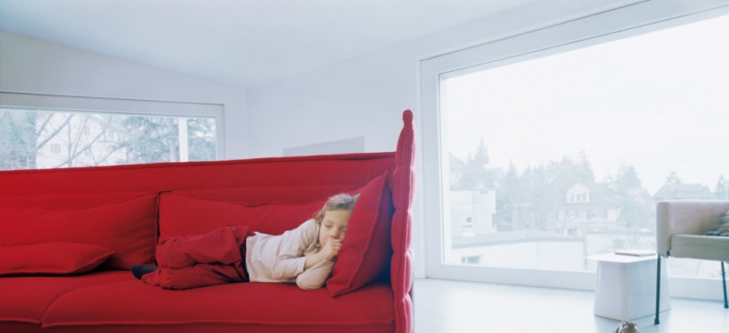 The central idea behind the Alcove collection is that a sofa can go beyond being merely a piece of furniture and become a room of its own within a room. The Alcove sofa and high back sofa feature an unusually high backrest, allowing the user to withdraw physically and psychologically from surrounding activity. The collection’s comfortable contours introduce new ways to occupy a room. Easy to install, match and move around, these sofas represent an island of calm, a place to relax, focus on a w