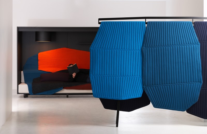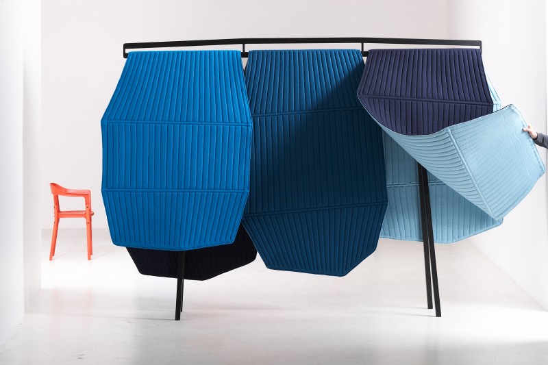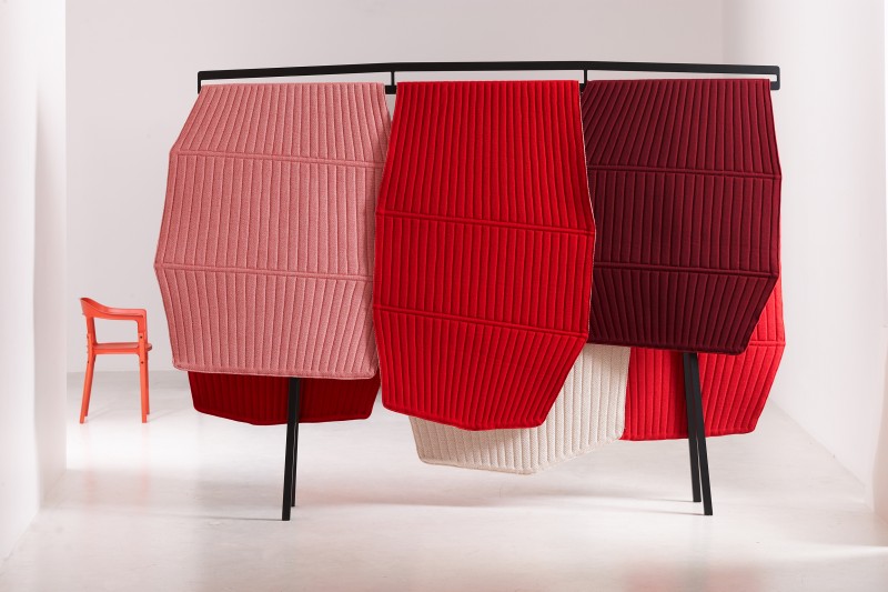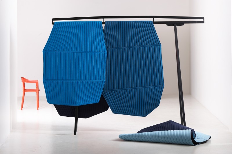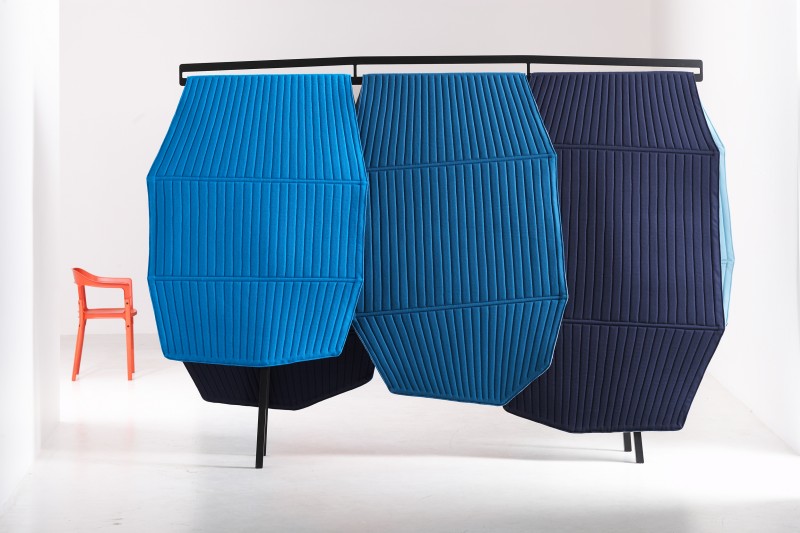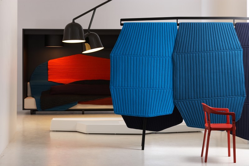 These four objects do not constitute a collection by any means as they were all designed at different times. However, they do represent the constant research of the Bouroullec brothers into the notion of the “quality of the atmosphere”. The use of fabric is one answer. In this case, it is a vehicle for colour, and the huge, flat, monochrome surfaces bring to mind abstract paintings.