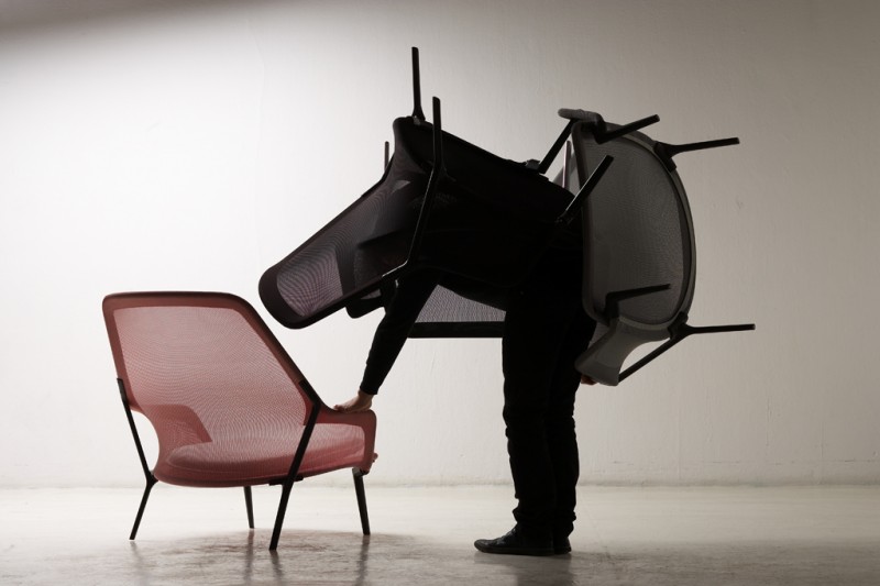 The very beginning of the slow chair was the fascination for knitted textile. We were expecting a lot from this material, many performances in terms of stretching and maintain at the same time. We had this intuition that this precise textile would be able to carry a body while taking its shape with a certain subtlety. Here, form and material are very much interrelated.