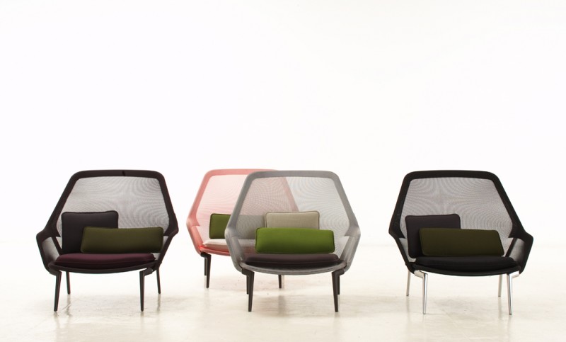 Shape Knitted fabric, bended steel tube, painted or polished aluminium, foam, fabric