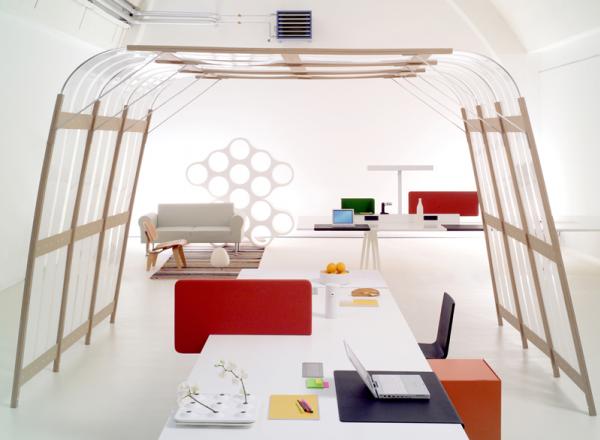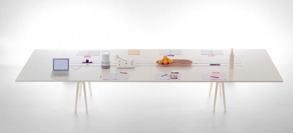 a room. They must be able to discuss things together; there must be proximity between colleagues but one also needs quietness in order to concentrate, as well as the opportunity to relax. In order to cover such a spectrum of diverse situations, one needs an object that unites all of these qualities. And we saw that in the table.