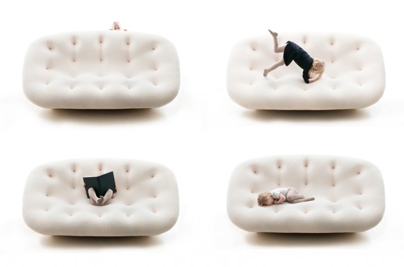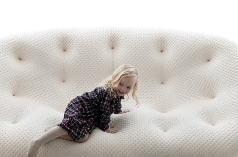 We attempted to make a very comfortable, contemporary sofa. Ploum is an exercise in comfort and combines two materials: stretch-fabric upholstery and ultra-flexible resilient foam. The shape and vast proportions were specially studied to allow the whole body to recline in many different positions on the sofa’s supple, quilted surface without edges. Its seat is relatively low, we wanted it to be organic. We pictured Ploum like a ripe, voluptuous piece of fruit.