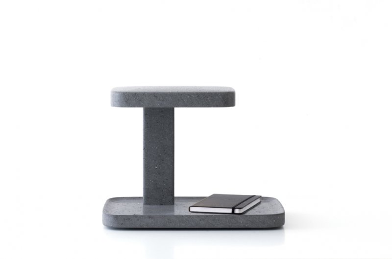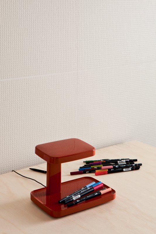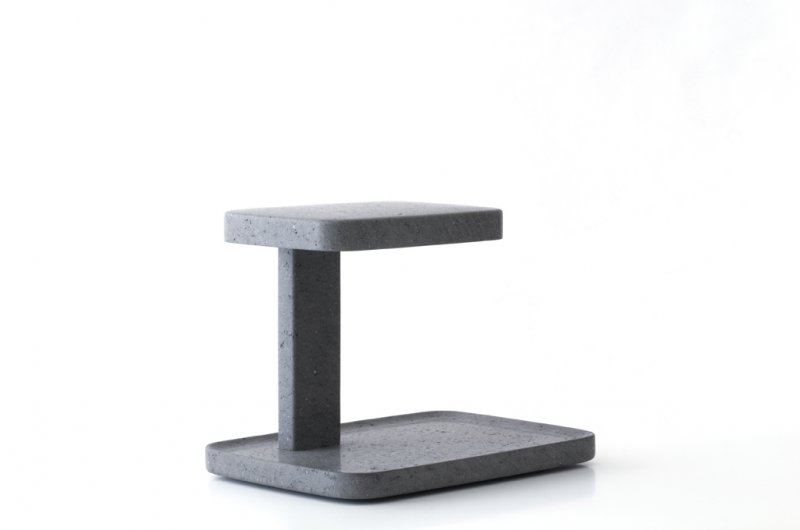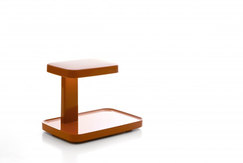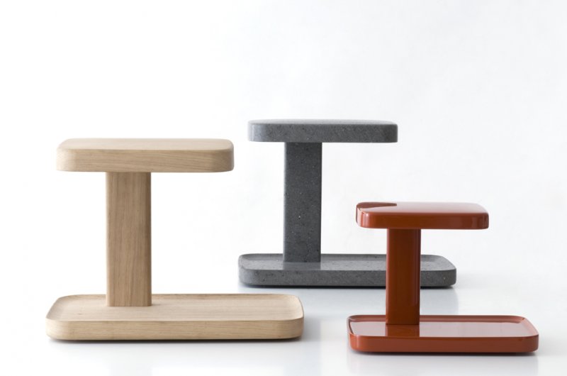 The Piani collection is made of a flat base and a flat top. The base is either a tray so that objects can be displayed in a triangular beam of light as if they were on stage or in its longer version, a shelve so that more objects can be supported by this hybrid design. Piani comes in plastic as well as in oak wood and basalt stone in the shelving versions so that different sensual experiences are suggested.