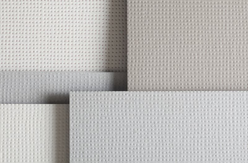 The collection comes in three differently coloured bases (white, grey and sand), composed of specific mineral mixtures that produce surfa