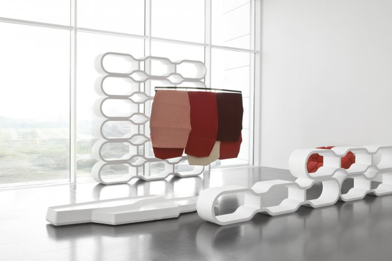 Imagined as a temporary encampment - hence its name - Bivouac is deliberately divested of scenographic elements other than the Bouroullecs' work.