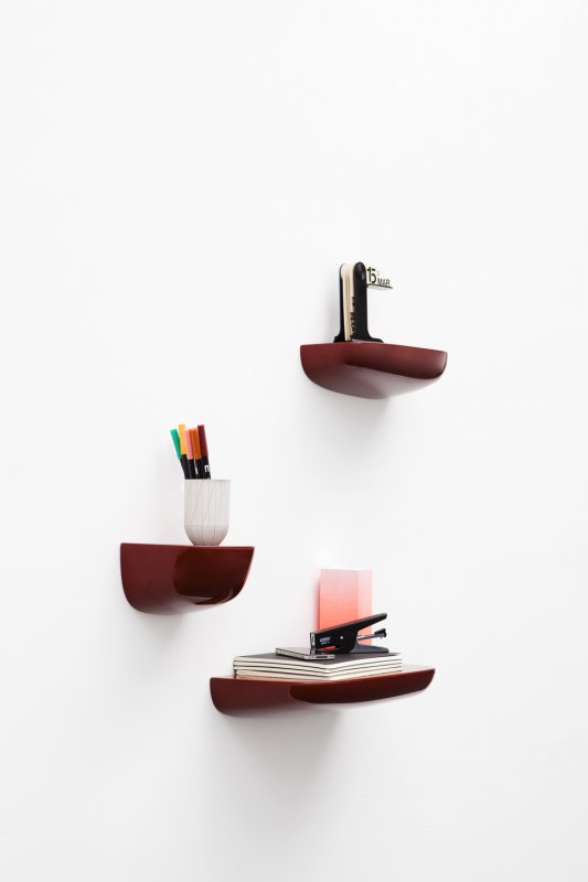 Corniches illustrates the idea of creating an impromptu storage area. The idea behind this design arose from the need for small storage spaces to spontaneously keep items. Corniches are individual protrusions in the environments that can be used and organized freely, to put items of daily use to keep them at one’s fingertips or to make a larger installation. These glossy pedestals made of ABS come in three sizes and a variety of colors that include white, black and red.