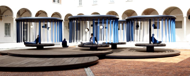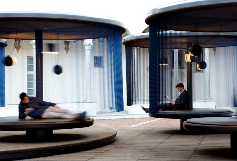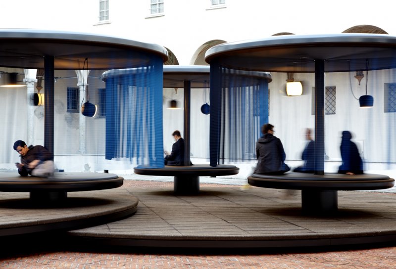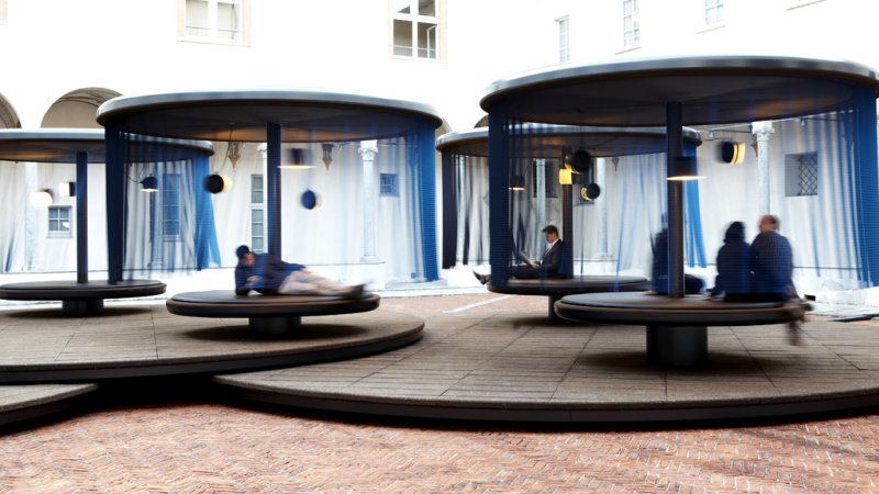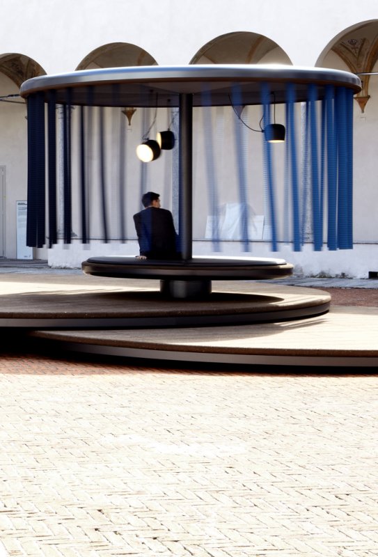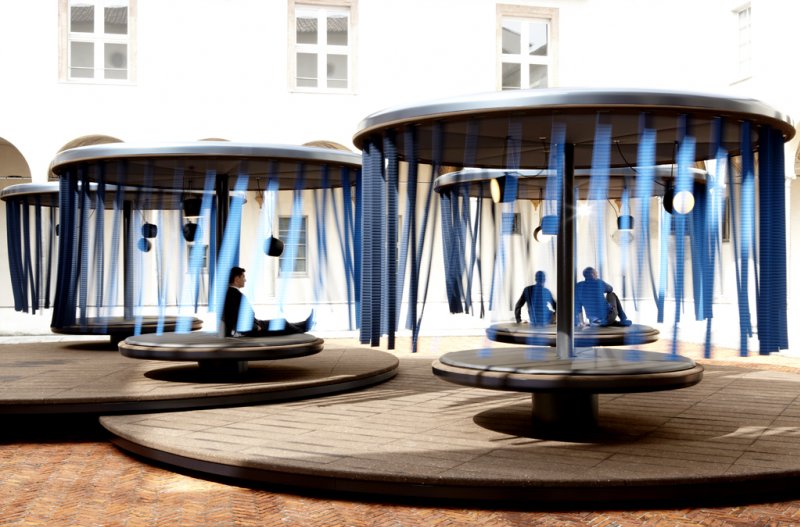 Quiet Motion is an installation made of four round platforms that rotate slowly and silently, reminiscent of a carousel. It has been designed as an allegorical interpretation of movement and contemplation.