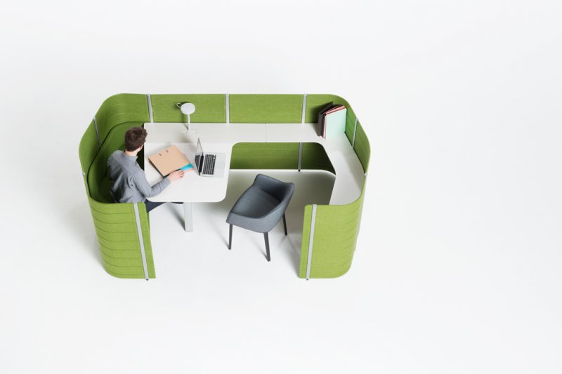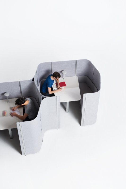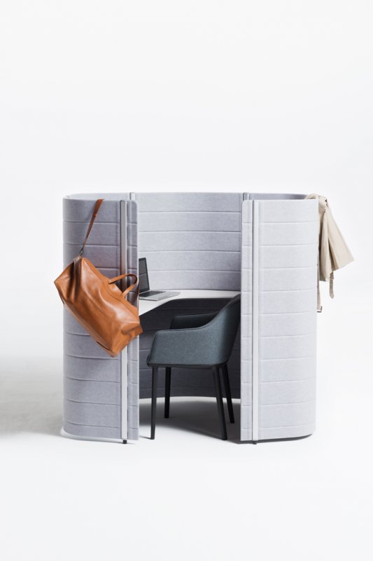 Thus Workbays create distinct areas where individuals or groups can retreat from the general office environment to carry out specific activities. The units come equipped with everything users need: work surfaces, seating and optional storage and power connections. Workbays respond to the necessity for noise reduction and help to absorb disruptive sounds in the surrounding environment. They can spontaneously serve as telephone booths, video conference rooms, reading corners, quiet spots for a coffee break or meeting rooms – without sending participants behind closed doors.