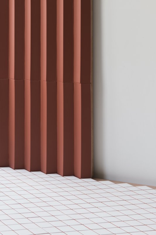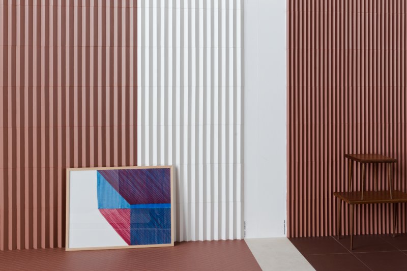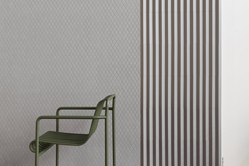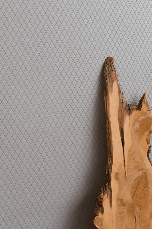 With Triangle, the shape of the rhombus is interpreted in its three-dimensional shape, in order to create games of lights and darkness on the surface: the elements, realized in Large and Small versions, seem to arise from the floor and to carry on the wall covering.