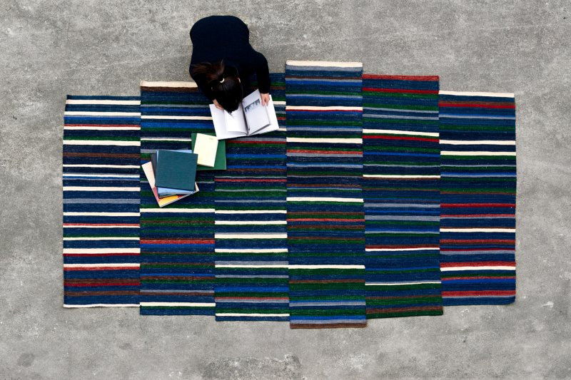 “Rugs are commonly designed as a surface on which a pattern is distributed. However in the case of Lattice, the pattern is defined as a constructive system to generate the form of the rug itself. The system of coloured bands, in which pattern, form and colour are linked in an intimate manner, creates a different scope." - Explain the Bouroullec.