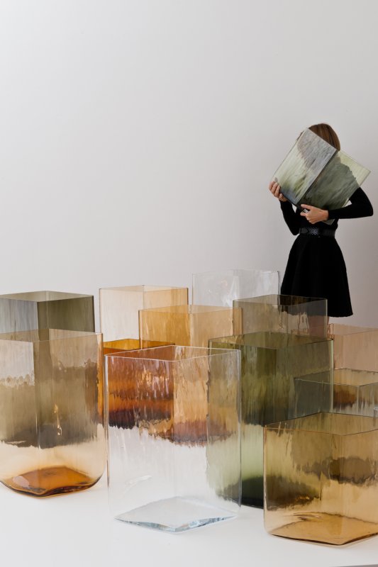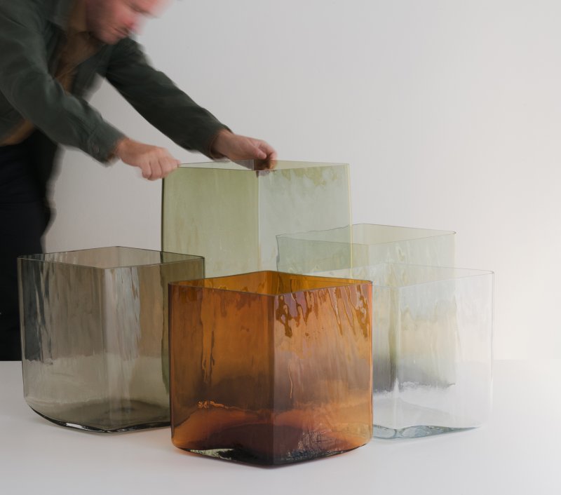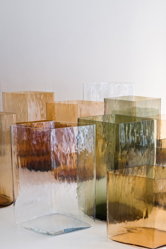 Ruutu vases is a collection of 14 unique vases hand-blown by Finnish manufacturer Iittala for gallery kreo.