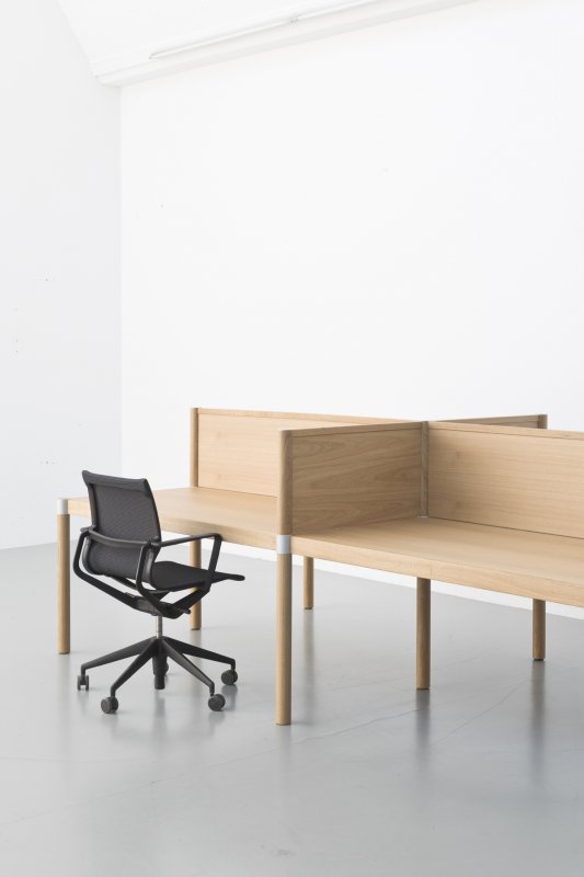 Cyl was originally conceived for the home as a table programme, but soon we sensed the potential to turn it into a system with a larger range of typologies. It was an important step to realise that its domestic qualities are interesting in the office landscape. We think the simplicity of Cyl responds to a demand for clarity and fosters a welcoming atmosphere in the office world.