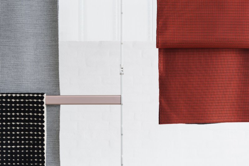 Fabrics are wonderful because most of the times their appearance naturally flows from their making. They are all the colors and structures of the yarns blending into your eyes and not a final coating that would erase the deepness. That is what we wanted to make visible, in great surface, taking the natural atmosphere of the space as a background.