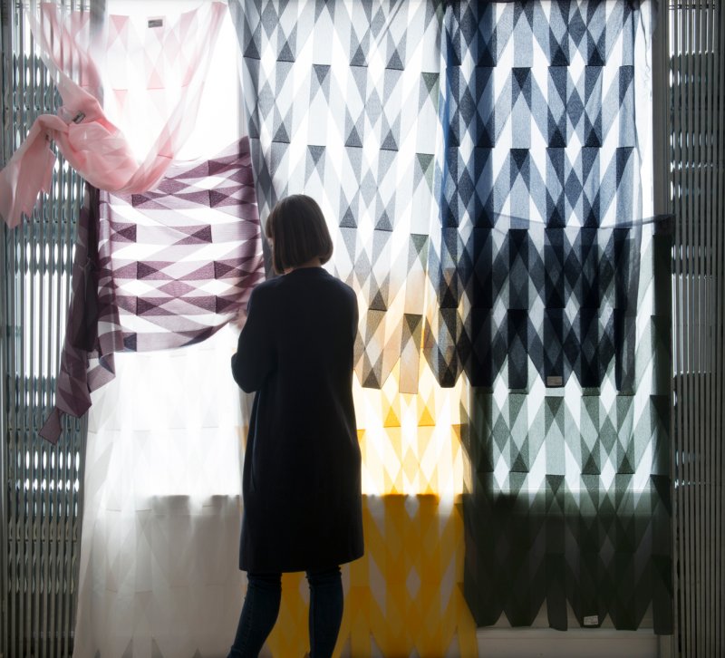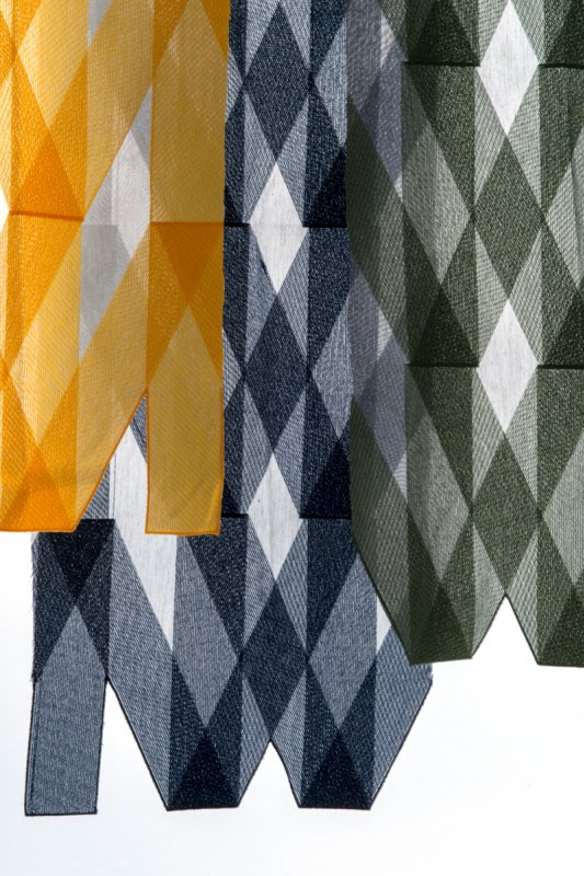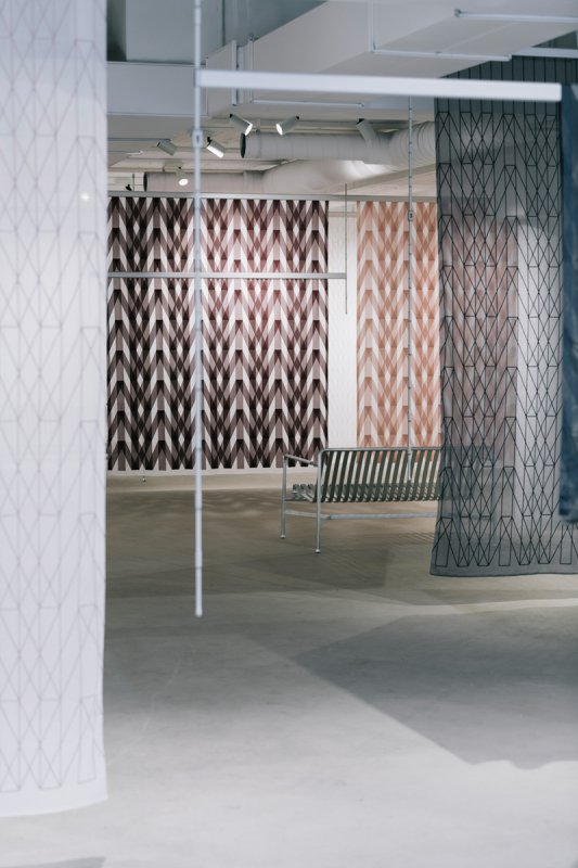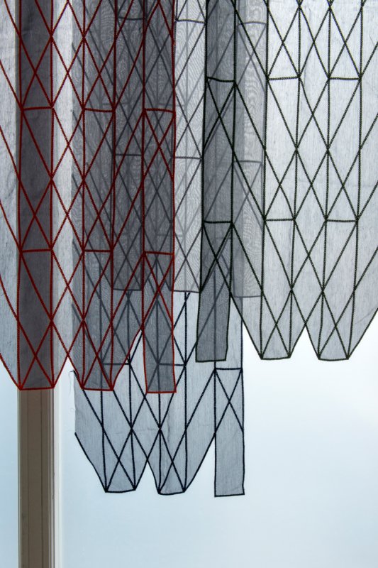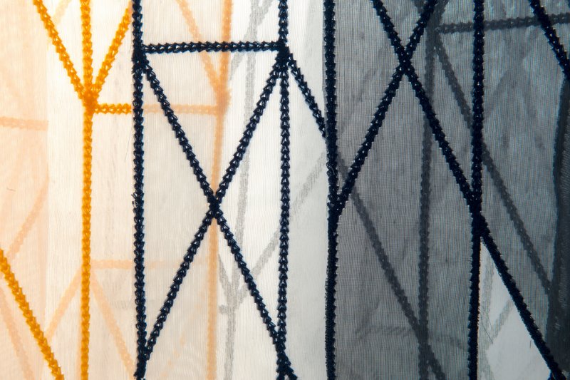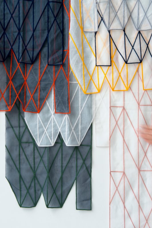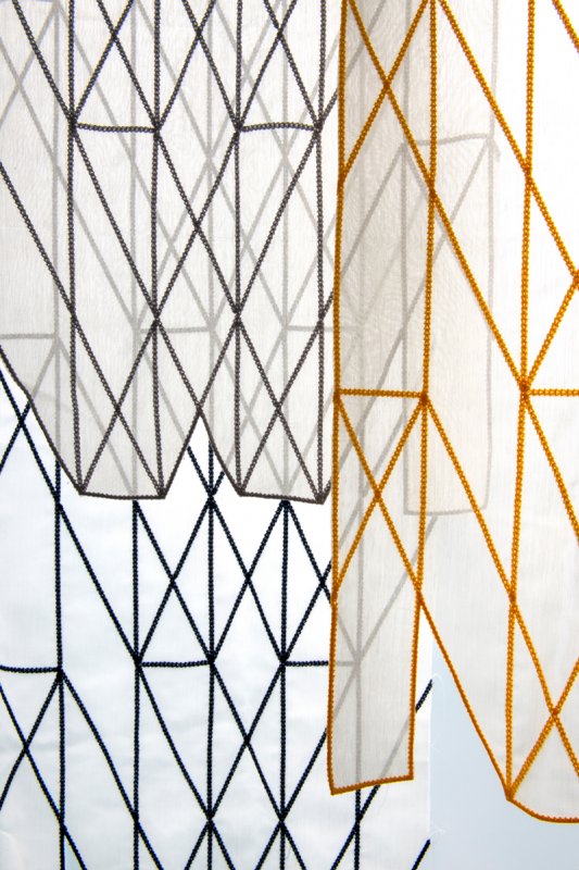 Embroidery, even mechanical, has a very subtle way of enhancing the curtains and what happens when you see through. The yarns somehow model the surface while informing very smartly the colors. It still conveys a certain memory of old handcrafted embroideries, but our approach to patterns and the context of Kvadrat brought us to this very engineered and precise technique.