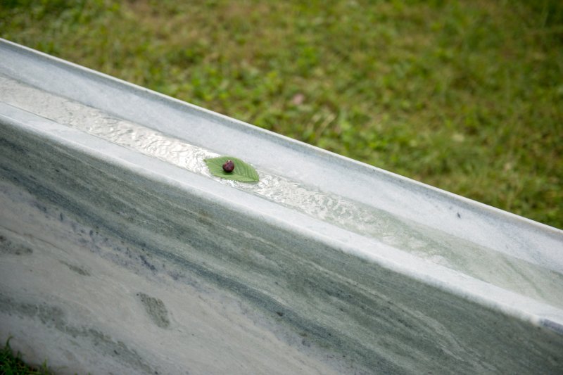 is a narrow channel carved in a marble base, filled with running water.