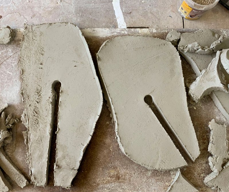 The regularity of the cylinder is combined with the naivety of the clay slabs.