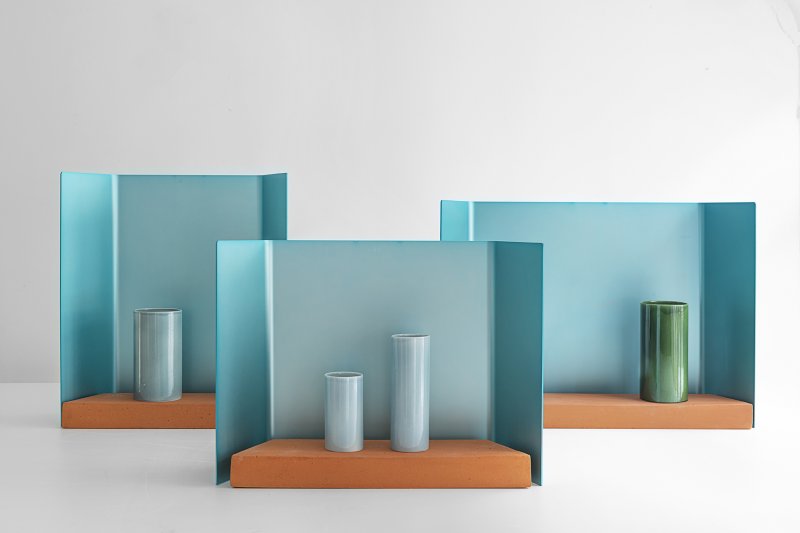 Terracotta, anodized aluminum and glazed ceramics were associated in three combinations to reference the image of a window through which one gazes onto a landscape.