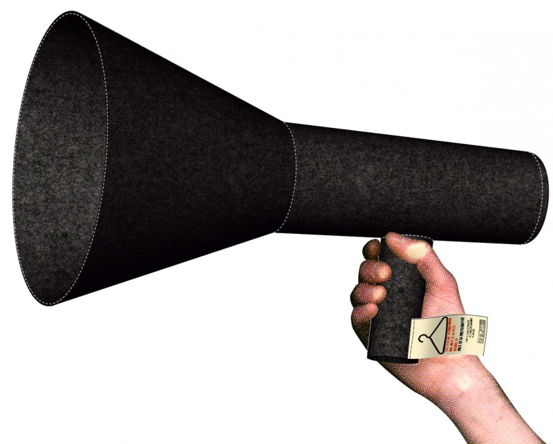 « A trophy designed as the image of a victory that you must often conclude with a speech. Indeed, it is about giving a shape to something that is merely a recognition, trying to create an object that provokes a certain exuberance. This megaphone – being but a fascimile – is lined with felt like a piece of Hermès leatherwork.”