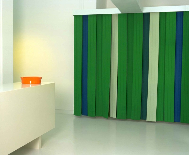 The curtains of the changing rooms are made up of a set of upholstered strips. They make the space of the changing rooms gentler, almost sound-proofed. “