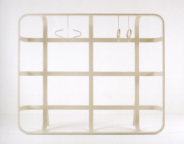 “The « Corian Wardrobe » is a shell, an outline. When you put clothes in it, the hangers disappear. The clothes are simply surrounded by a frame of uncertain function, without proportion. “