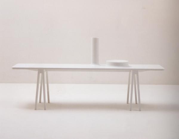 “The consoles are made entirely from Corian®. This synthetic material can be glued invisibly, allowing you to create the impression of a single, carved block. The same material also forms a vase or a mirror, running from the top all the way to the base. Thus everything is unified, the table with the vase, the mirror with the console.