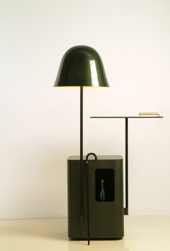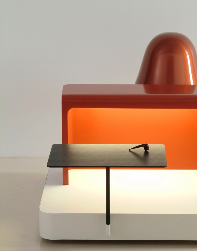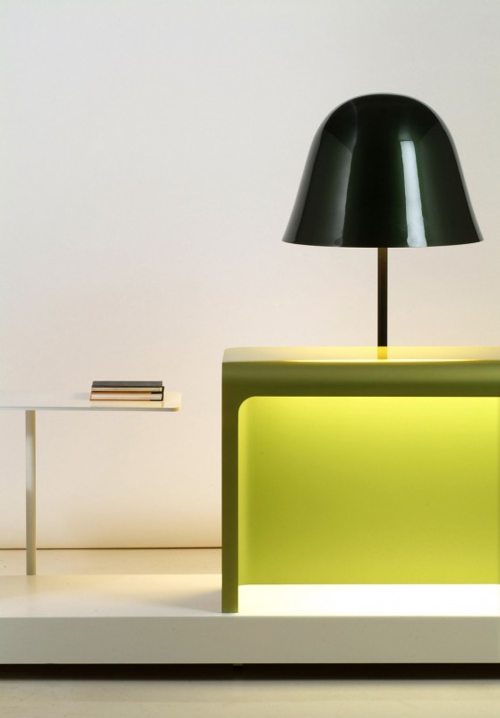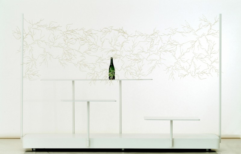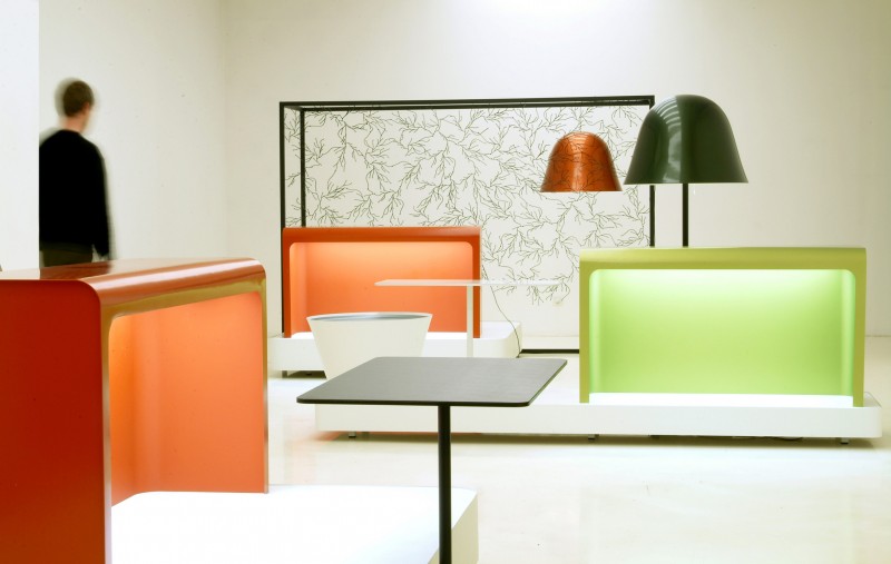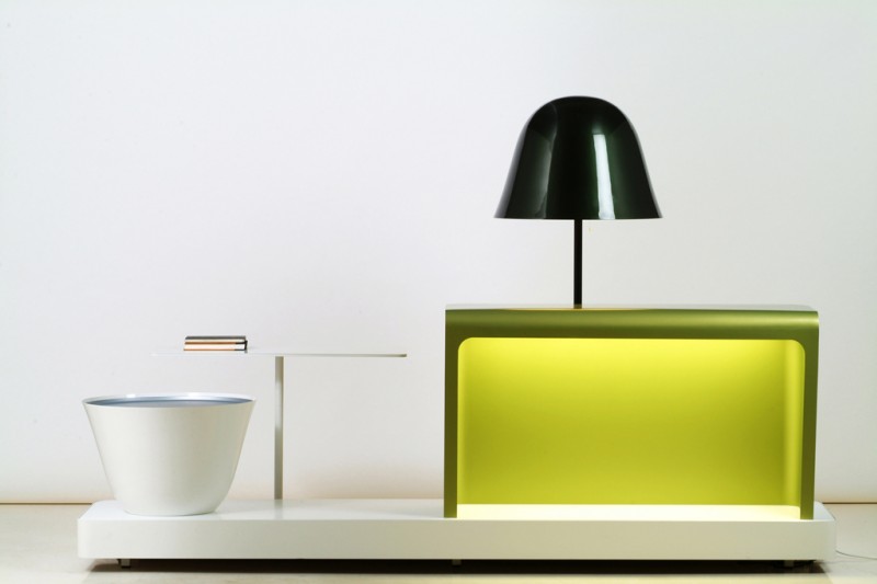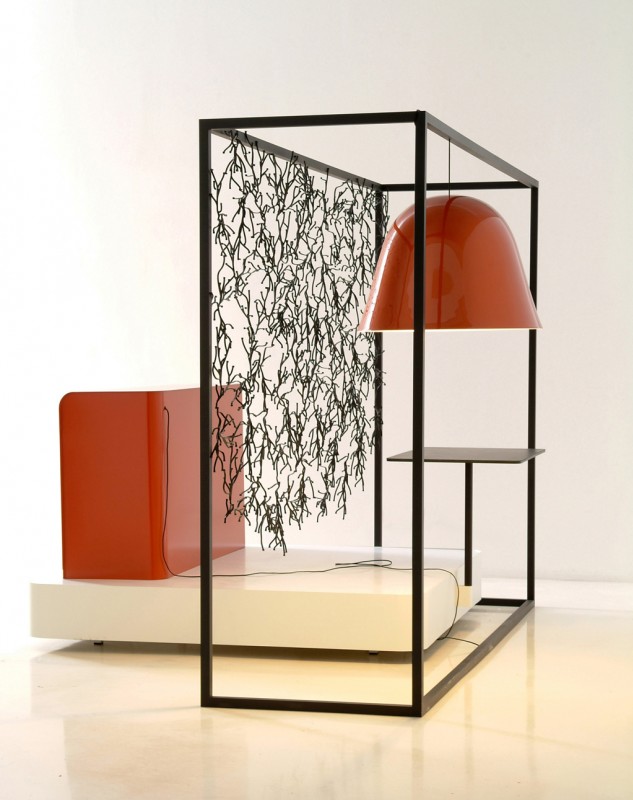 Corian®, bodywork paint, polyamide, leather, aluminium, steel, copper, fluorescent light source with dimmer, Algues