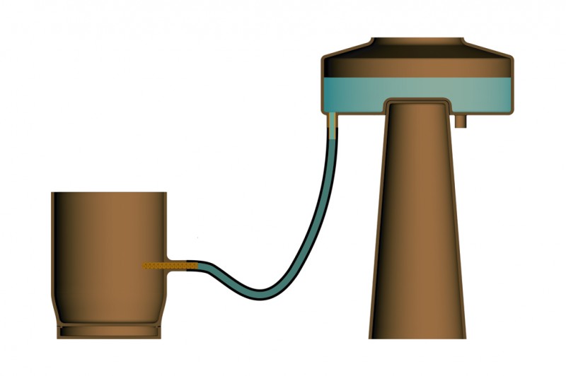 Terracotta, polyamide straps, painted steel, rubber tube and water dispensing pieces